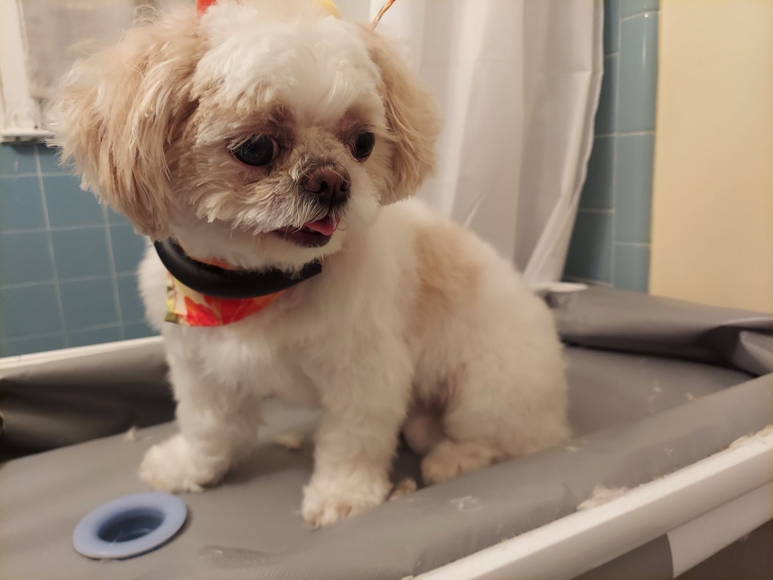 Going to a salon or mobile van can add extra stress to a pet. Between the car ride, separation anxiety, other animals, new people, and unfamiliar noises coming from different directions, most animals are nervous for grooming. Being at home takes away so many unneeded anxieties that don't need to be added to an already possibly stressful experience of the groom itself.